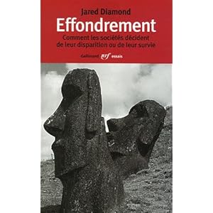Le livr Effondrement ékri par Jared Diamond èksplik briyamañ pourkwa lé sosyété ou grañd sivilizasyoñ se soñ ékroulé. Siñk koz posibl : la dégradasyoñ anvironmañtal, un chañjmañ klimatik, dè vwaziñ ostil, la pèrt de partenèr komèrsyo, é lè répoñs de la sosyété èl-mèm a sè problèm añvironmañto.